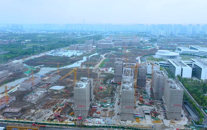 西湖大学总体工程体量大,质量要求严,周转场地小,项目采用绿色建造技术及混凝土组合结构应用技术,钢结构拼接 星辰影视高清,多工种交接点使得吊装施工更复杂,对群塔施工作业提出了更高的要求。