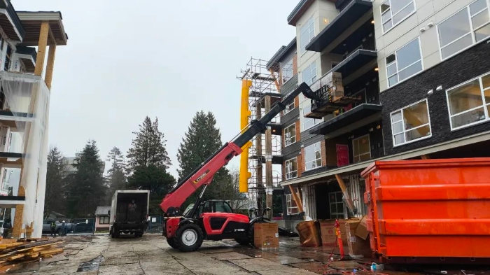 坐标北美,多台徐工高空作业平台 星辰影视,伸缩臂叉装车穿梭于一处大型住房建设项目上,成为施工现场一道亮眼的风景线。