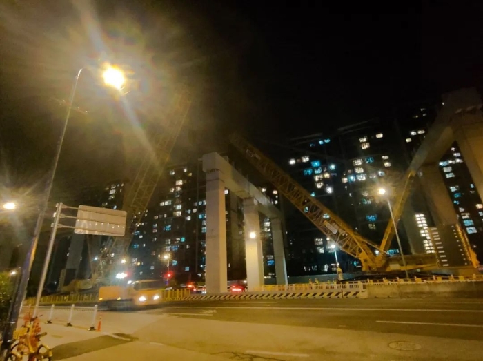 狭窄空间内,两机协同微调,在进行精确转场移动的同时,也避免了任何晃动或扭转 星辰影视在线,重物分毫不差地平稳落位至预定桥墩支座上,整个过程高效流畅,一气呵成。