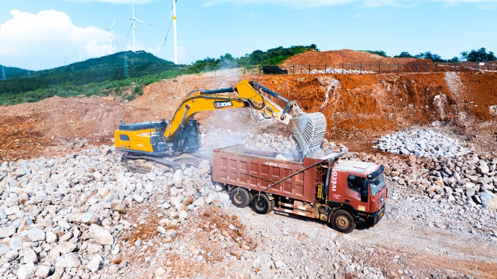 湖北宜城矿区深处,白云岩资源富集,开采作业正酣,徐工XE500GK液压挖掘机以主力姿态投身于繁忙的开采队伍当中 星辰影视,以卓越性能与可靠品质,赢得施工方高度认可,成为这片坚硬岩层中名副其实的“掘金巨无霸”。